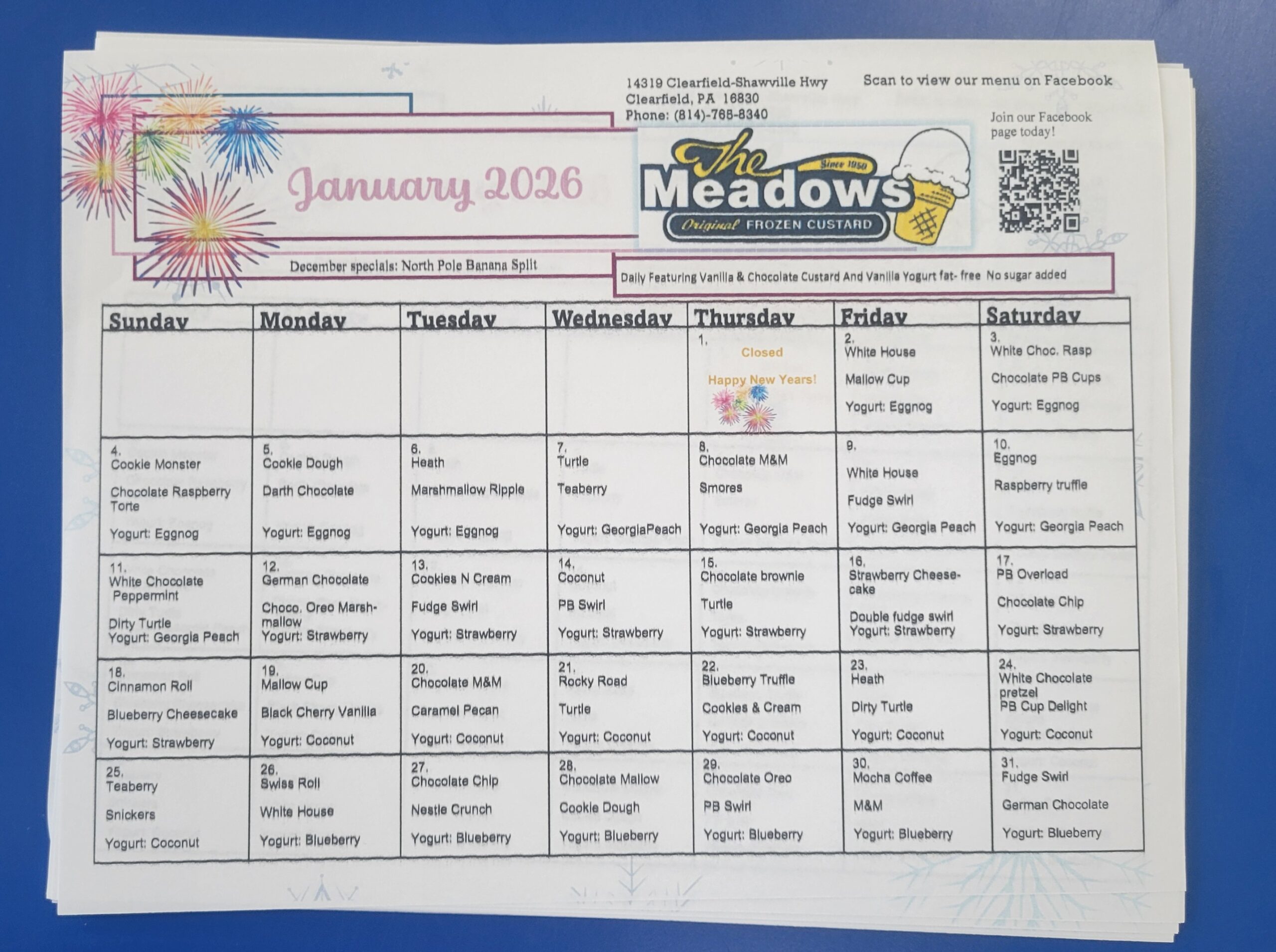 Enjoy The Meadows famous Original Frozen Custard in our eat-in parlor, walk-up windows or from our drive thru!!!